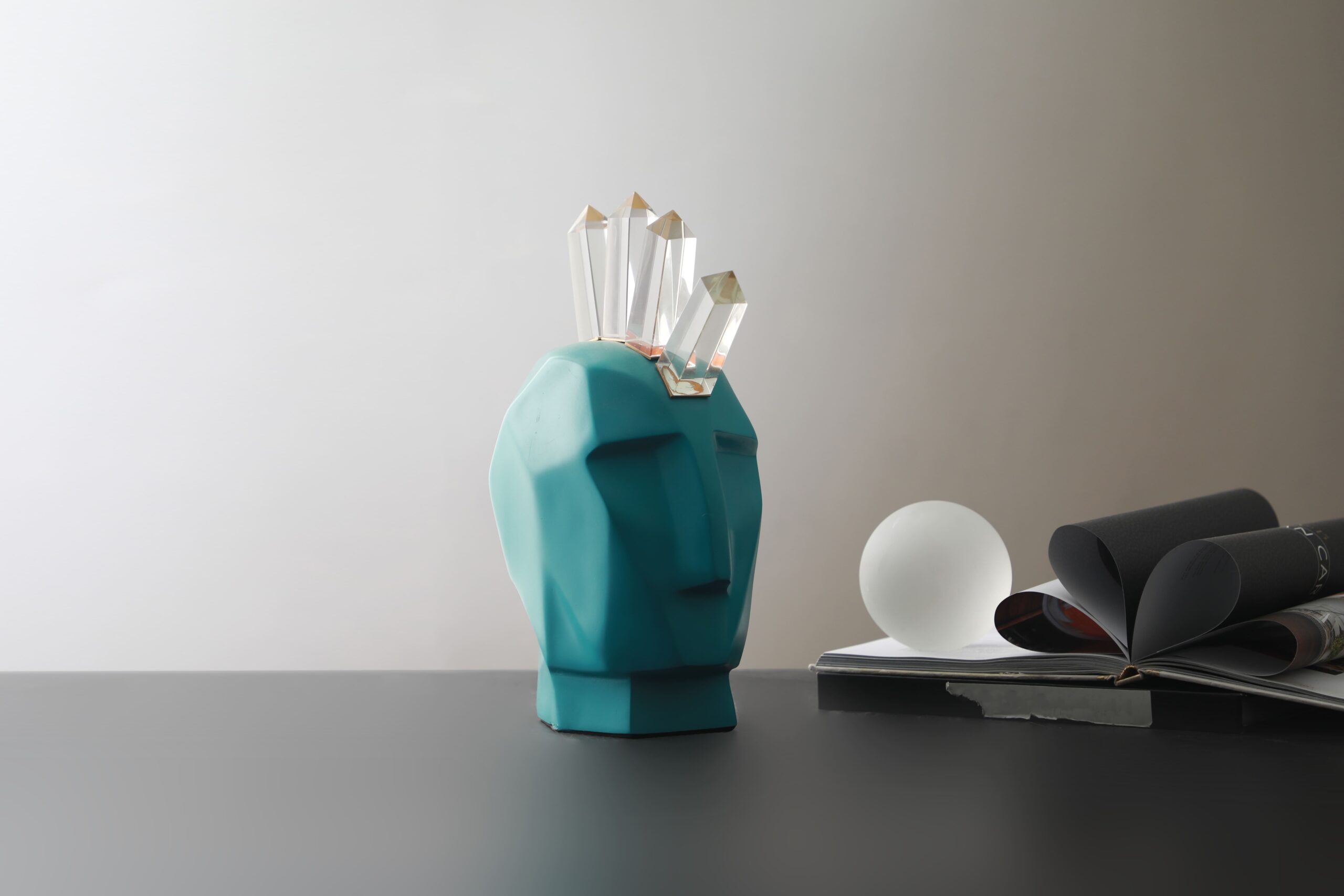 Accesorio decorativo en color verde, dimensiones 11.5×17.5x31cm.Material: Resina con incrustaciones de cristal