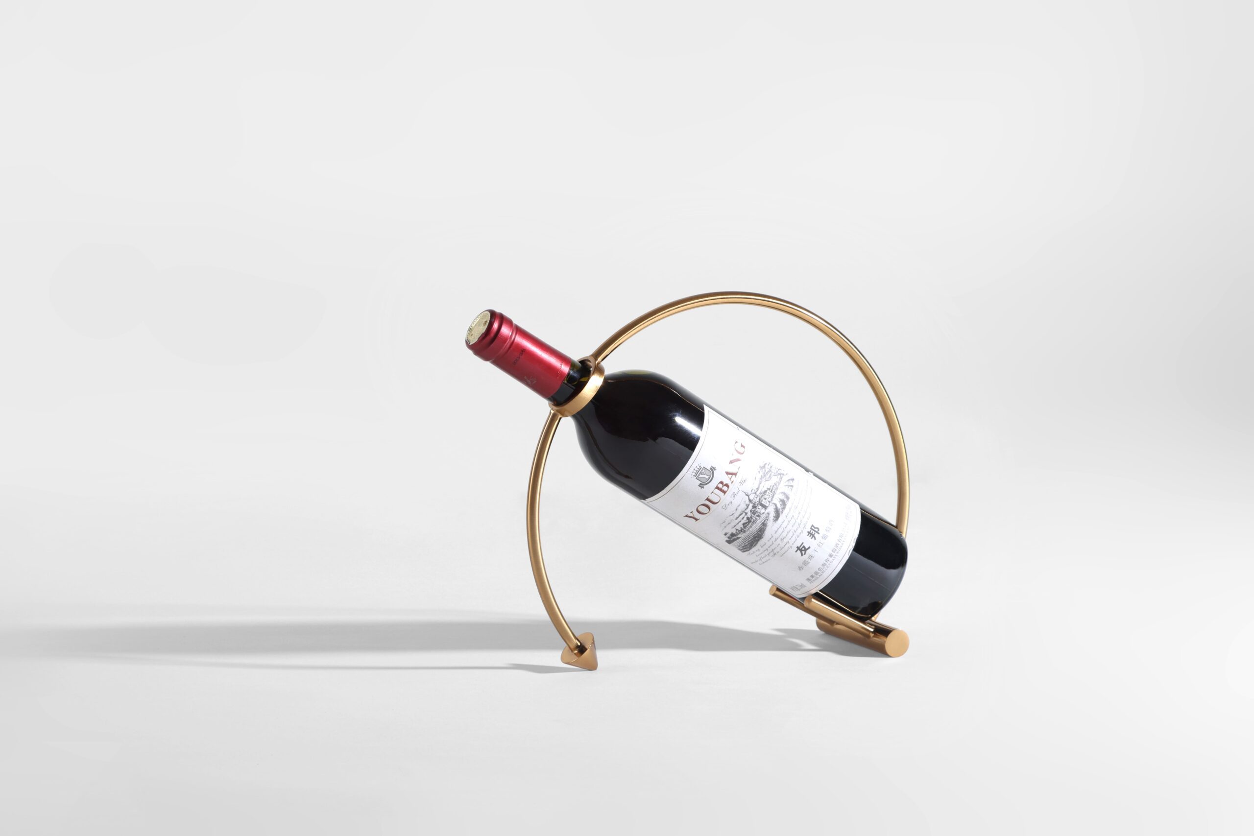 Porta vino elaborado en metal color dorado, dimensiones 27*8.5*23
