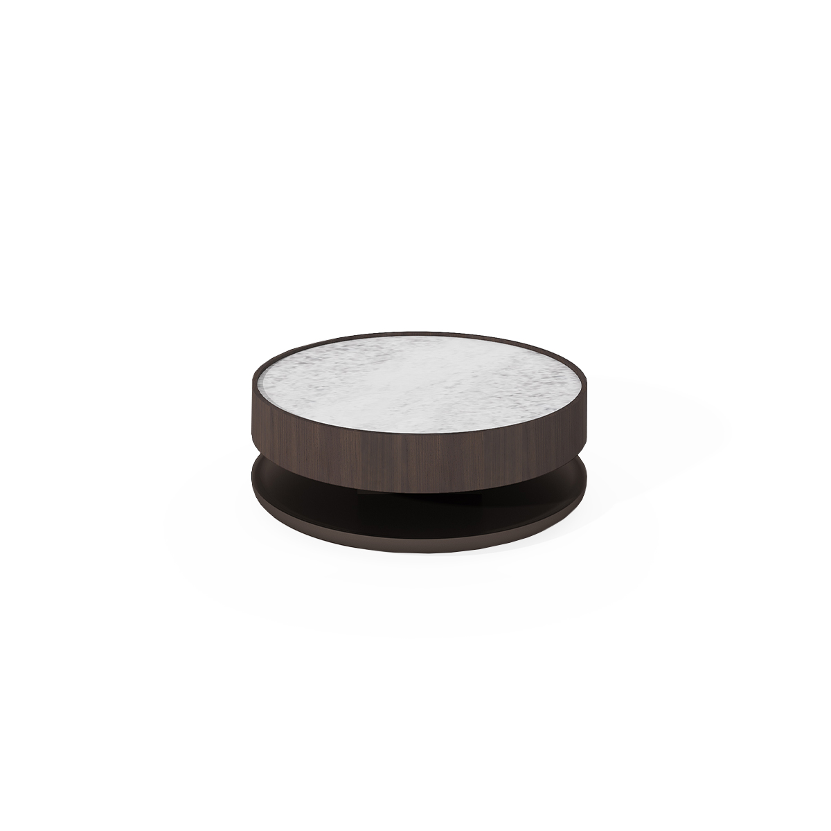 Mesa Auxiliar Fabricada con Top de Cerámica Gris Cristal, Marco Superior de Chapa de Madera, Panel inferior metálica incurvada Brown.Dimensiones: Diámetro 0.93mts, Alto: 0.32mts Abito / Color: DARK WALNUT