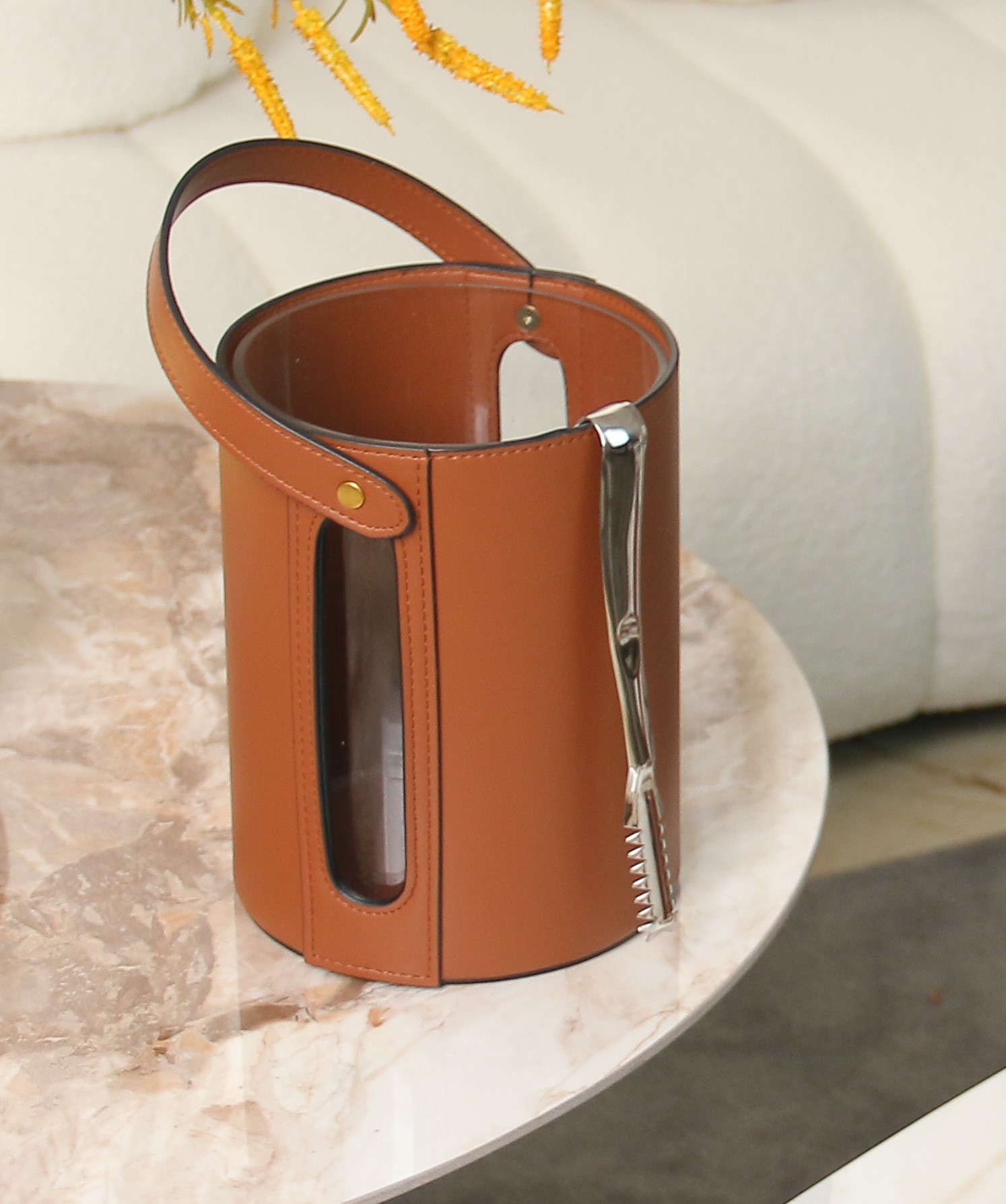 Recipiente para Hielo elaborado en Cristal, PU y Acero, Color Café, Medida 17.5*19cm.