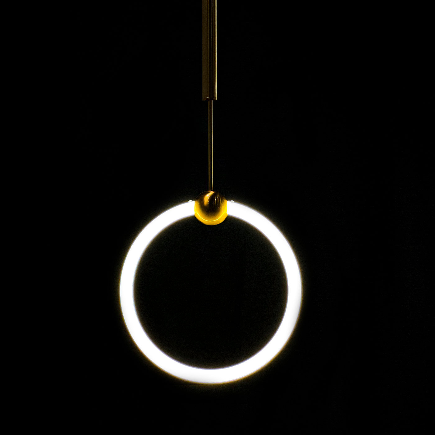 Lámpara colgante de aro circular con luz led de temperatura 3000k. Elaborada en metal. Dimensiones: D0.30*D0.060*Altura0.76m Abito / Color: Dorado