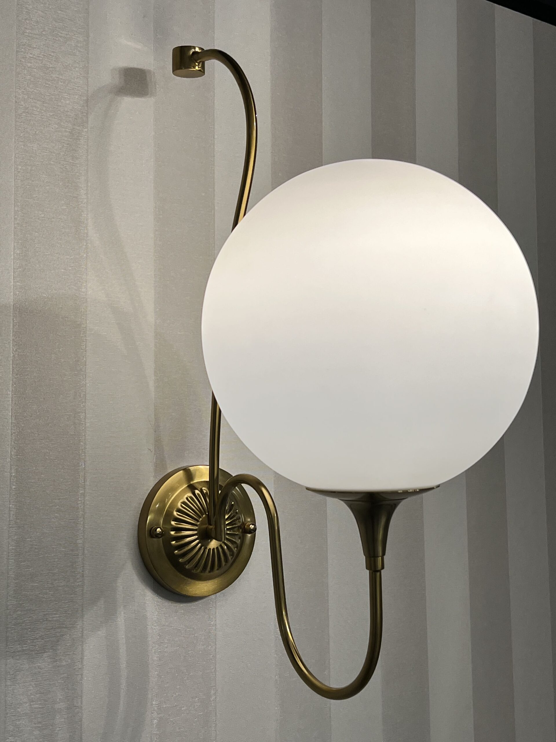 Lámpara de pared con soporte dorado y bombillo de vidrio Medida: Diámetro 0.30m