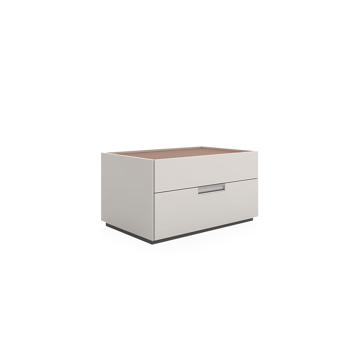 Mesa de noche con dos gavetas y manija incorporada.Color: Romance Orange con Light KhakiDimensiones: 0.70 × 0.41 × 0.48 mAbito / Tamaño: King