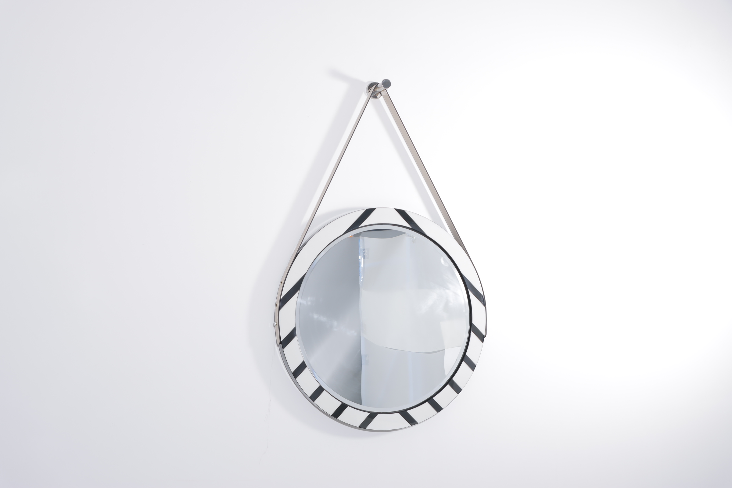 Espejo de Pared elaborado en MDF laqueado, Color Blanco y Negro, medida 44*75cm, Con altura máxima de 85cm.